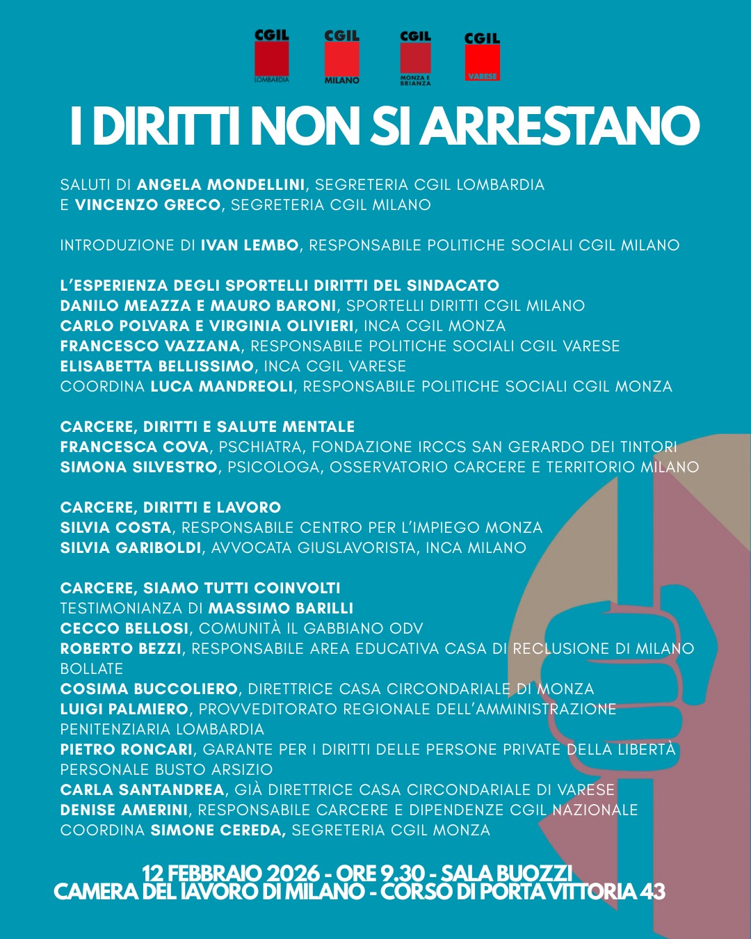 I diritti non si arrestano + Aggiungi a Google Calendar + esporta iCal / Outlook Data 12 Feb 2026 Ora 9:30 Luogo Camera del Lavoro Milano Corso di Porta Vittoria, 43, Milano Cerca Ricerca per: Categorie Eventi Immigrazione Lavoro News Servizi