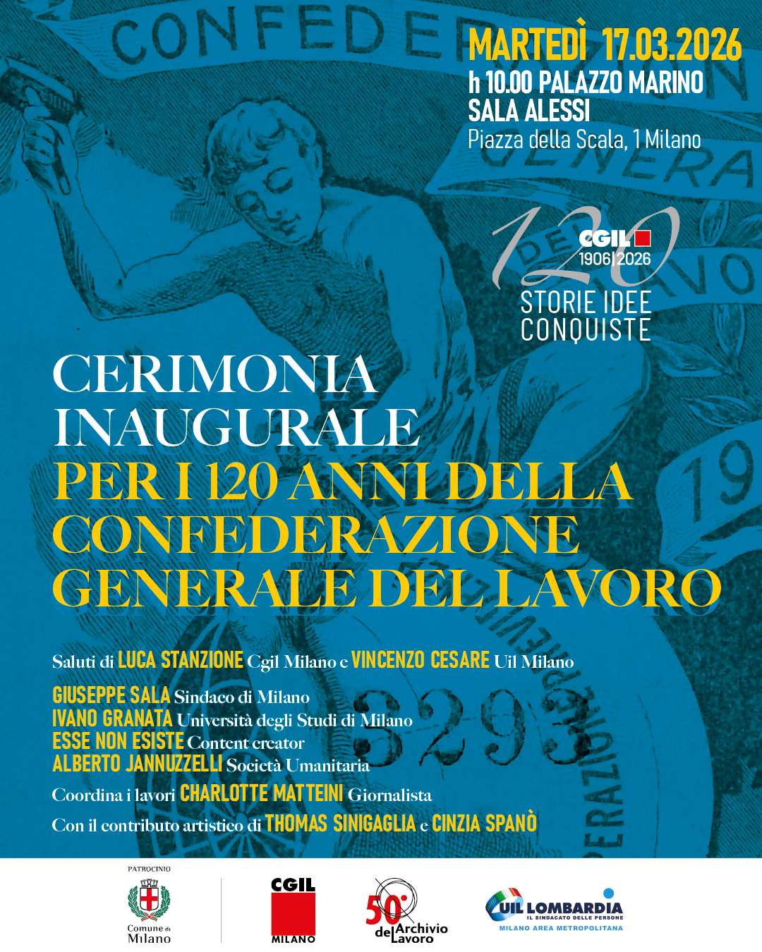 120 Cgil: cerimonia a Palazzo Marino il 17 marzo