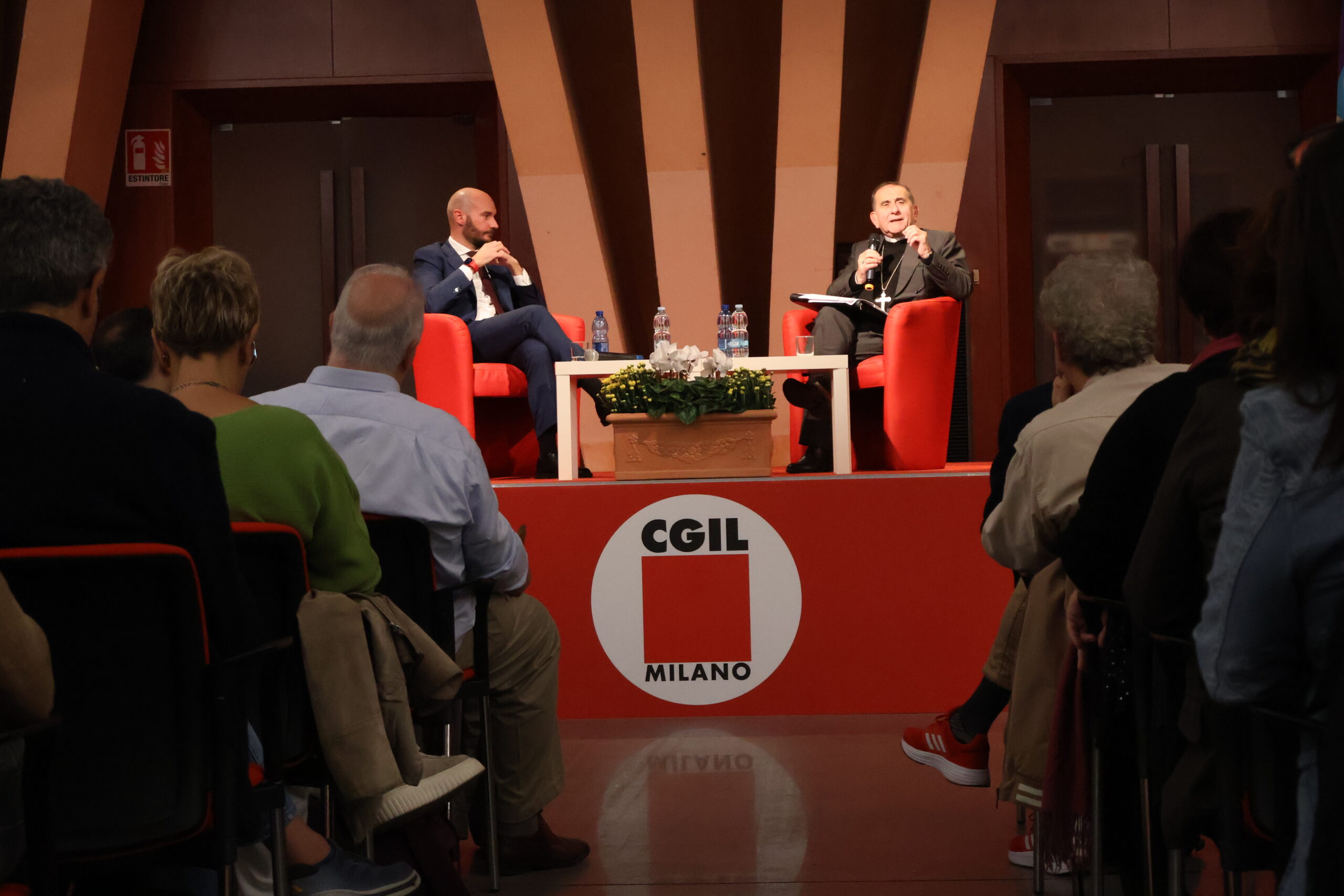 Oggi un incontro storico alla Camera del Lavoro di Milano. Storico, perché è la prima volta che un Arcivescovo incontra la Cgil nella sede del sindacato. Lo ha fatto Mario Delpini, in dialogo col segretario generale Cgil Luca Stanzione nel Salone Di Vittorio.